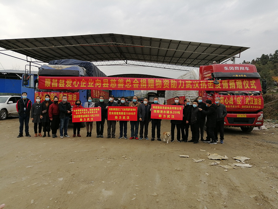 疫情暴發(fā)后,湖北武漢等地區(qū)相關(guān)物資全面告急,縣慈善總會多方籌措,盡一切所能,積極發(fā)動愛心企業(yè)募集救災(zāi)物資。2020年2月25日,第一批由順昌和順通農(nóng)業(yè)有限公司捐贈的10噸優(yōu)質(zhì)蘆柑和榕宏農(nóng)業(yè)科技有限公司捐贈的4噸流星包菜從從洋墩鄉(xiāng)的順昌柑桔品牌監(jiān)管倉出發(fā),奔赴武漢,定向捐贈給湖北省烹飪酒店行業(yè)協(xié)會,用于定點醫(yī)院醫(yī)護人員和患者的供保餐盒制作原材料供給。