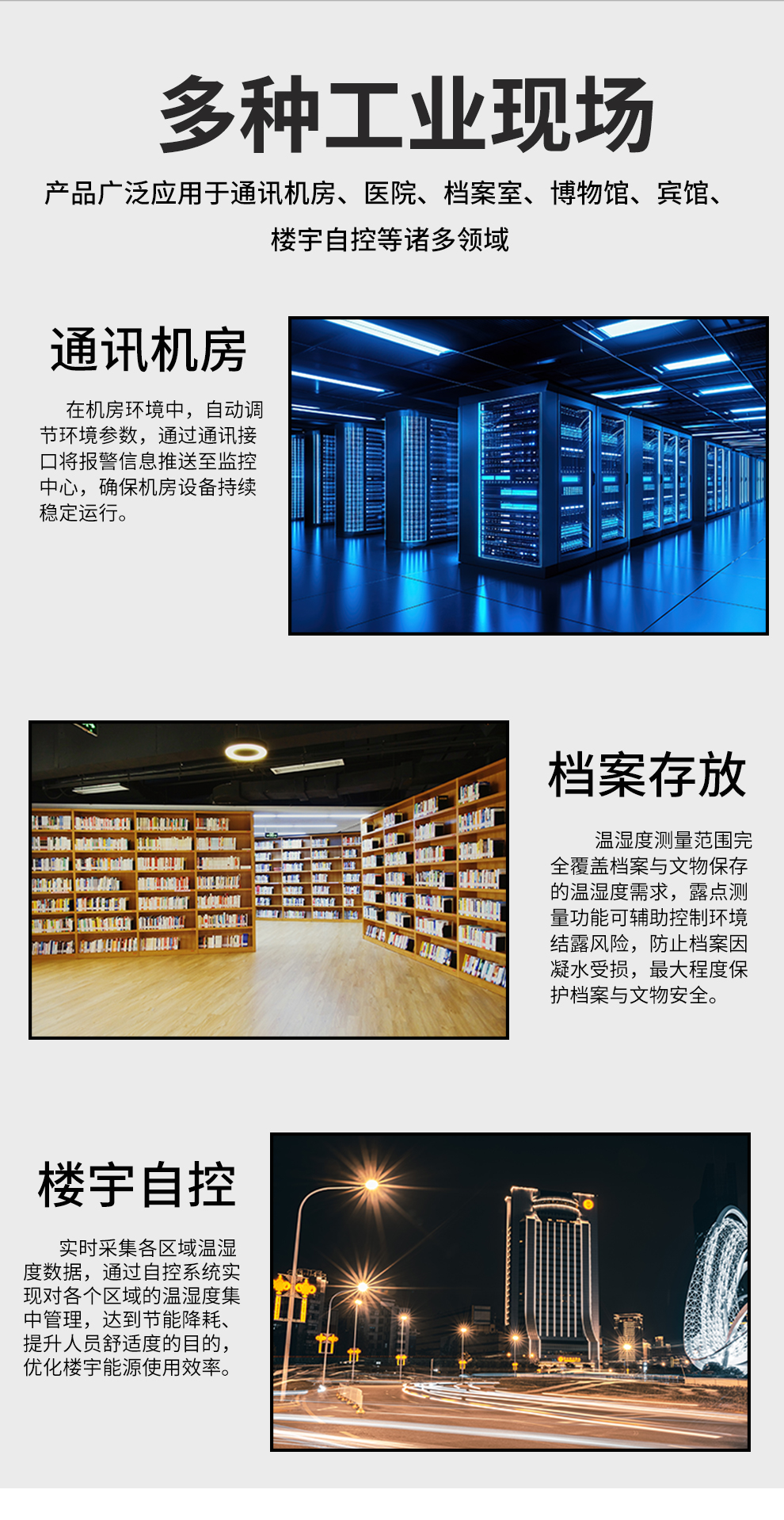 虹潤(rùn)公司是專業(yè)生產(chǎn)環(huán)境監(jiān)測(cè)儀表的國(guó)家專精特新“小巨人”企業(yè)。生產(chǎn)的壁掛式溫濕度控制器,具有溫度、濕度、露點(diǎn)高精準(zhǔn)的測(cè)量,多種輸出類型,穩(wěn)定性強(qiáng),RS485/RS232通訊,IP65防護(hù)等級(jí)等特點(diǎn)。產(chǎn)品獲得一種手持式低功耗溫濕度檢測(cè)儀、大屏幕溫濕度記錄儀等2項(xiàng)國(guó)家發(fā)明專利,主持起草物聯(lián)網(wǎng)智能溫度儀表通用技術(shù)條件、冷鏈溫度記錄儀等2項(xiàng)國(guó)家標(biāo)準(zhǔn),通信系統(tǒng)多通道數(shù)據(jù)采集控制終端規(guī)范軍用標(biāo)準(zhǔn),以及現(xiàn)場(chǎng)設(shè)備集成等5項(xiàng)智能制造國(guó)家標(biāo)準(zhǔn),參與國(guó)際5G標(biāo)準(zhǔn)制定,取得溫濕度儀表等2項(xiàng)相關(guān)軟件著作權(quán)。產(chǎn)品廣泛應(yīng)用于工業(yè)現(xiàn)場(chǎng)、農(nóng)業(yè)大棚、倉(cāng)儲(chǔ)物流、地下管廊、養(yǎng)殖孵化、配電機(jī)房等諸多領(lǐng)域。