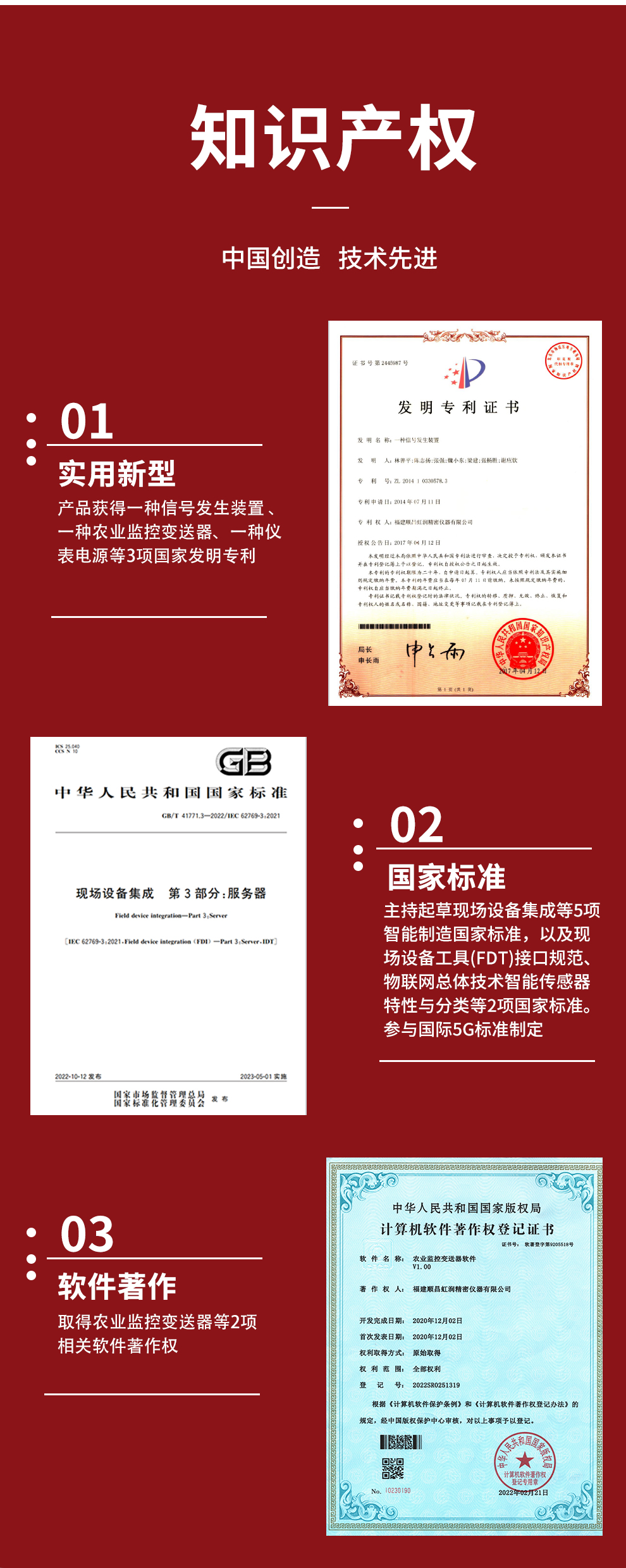 虹潤公司是專業(yè)生產環(huán)境監(jiān)測儀表的國家專精特新“小巨人”企業(yè)。生產的氧氣變送器,具有采用電化學原理,響應靈敏,準確度高,低功耗,模擬量變送輸出或RS485通訊等特點。產品獲得一種農業(yè)監(jiān)控變送器、一種儀表電源等2項實用新型專利,主持起草現場設備集成等5項智能制造國家標準,以及現場設備工具(FDT)接口規(guī)范、物聯網總體技術智能傳感器特性與分類等2項國家標準,參與國際5G標準制定,取得農業(yè)監(jiān)控變送器等3項相關軟件著作權。產品廣泛應用于機房、配電站、地下車庫、工廠倉庫、食品儲存、養(yǎng)殖場、果蔬林園等環(huán)境場合對氧氣濃度的檢測。