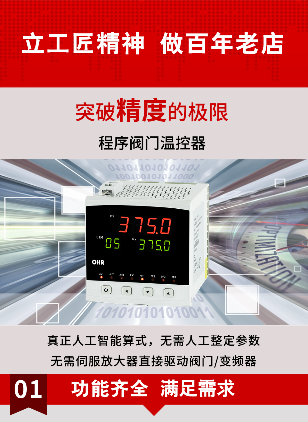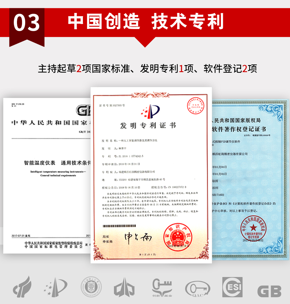 虹潤(rùn)公司是專業(yè)生產(chǎn)溫控器的國(guó)家專精特新“小巨人”企業(yè)。生產(chǎn)的程序閥門溫控器,具有50段溫控程序控制,真正人工智能算式,無(wú)需人工整定參數(shù),控制精度可達(dá)±0.1°C,加熱制冷雙向控制等特點(diǎn)。產(chǎn)品獲得模糊PID控制儀及控制方法、人工智能調(diào)節(jié)器、智能化控制器、移相觸發(fā)控制器、閥門自動(dòng)手動(dòng)無(wú)擾動(dòng)操作控制方法及裝置等5項(xiàng)國(guó)家發(fā)明專利,主持起草智能溫度儀表通用技術(shù)條件、工業(yè)過(guò)程控制系統(tǒng)用模擬輸入兩位或多位輸出儀表、工業(yè)過(guò)程測(cè)量和控制系統(tǒng)用智能調(diào)節(jié)器等3項(xiàng)國(guó)家標(biāo)準(zhǔn),,以及通信系統(tǒng)多通道數(shù)據(jù)采集控制終端規(guī)范軍用標(biāo)準(zhǔn),參與國(guó)際5G標(biāo)準(zhǔn)制定,取得增強(qiáng)型分段調(diào)節(jié)器等3項(xiàng)相關(guān)軟件著作權(quán)。產(chǎn)品廣泛應(yīng)用于電力、石化,冶金、制藥、食品等幾乎所有工業(yè)現(xiàn)場(chǎng),實(shí)現(xiàn)精準(zhǔn)控溫,保障生產(chǎn)安全與質(zhì)量。