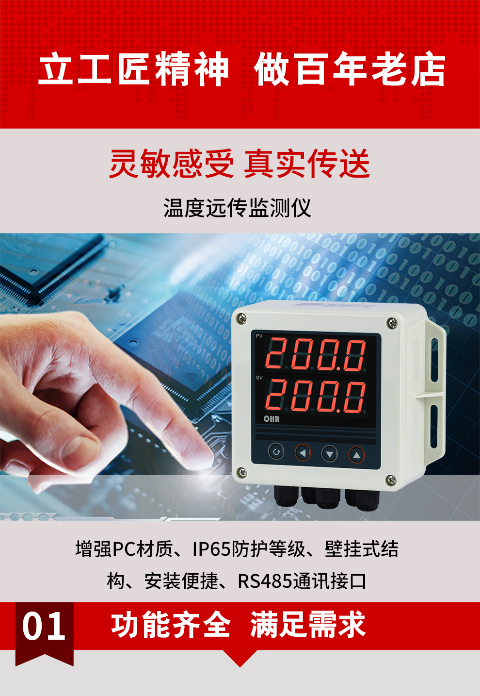 虹潤公司是專業(yè)生產(chǎn)多路溫度巡檢儀的國家專精特新“小巨人”企業(yè),生產(chǎn)的溫度遠(yuǎn)傳監(jiān)測儀,具有兩路PT100信號輸入,壁掛式結(jié)構(gòu),IP65防護(hù)等級,高抗干擾,帶RS485通訊輸出等特點。產(chǎn)品獲得巡回檢測顯示方法及裝置、儀表殼體等2項國家發(fā)明專利,主持起草工業(yè)過程控制系統(tǒng)用模擬輸入兩位或多位輸出儀表、物聯(lián)網(wǎng)智能溫度儀表通用技術(shù)條件等2項國家標(biāo)準(zhǔn)以及通信系統(tǒng)多通道數(shù)據(jù)采集控制終端規(guī)范軍用標(biāo)準(zhǔn),參與國際5G標(biāo)準(zhǔn)制定,取得雙路回路溫度遠(yuǎn)傳監(jiān)測儀等2項相關(guān)軟件著作權(quán)。產(chǎn)品廣泛應(yīng)用于電力、石化、冶金、制藥、水處理、機(jī)械配套等各種工業(yè)現(xiàn)場。