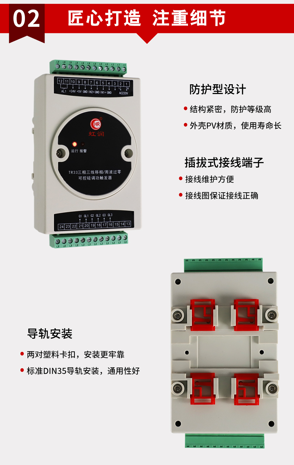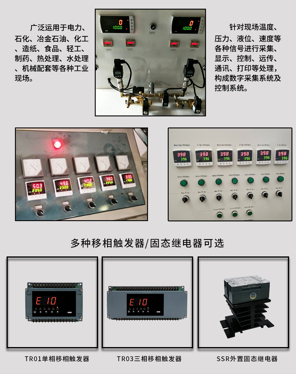 虹潤公司是專業(yè)生產(chǎn)移相觸發(fā)器的國家專精特新“小巨人”企業(yè),生產(chǎn)的移相觸發(fā)器,具有采用光電隔離設(shè)計,自動同步功能,過流保護技術(shù),電源缺相檢測,信號超限報警等特點。產(chǎn)品獲得巡回檢測顯示方法及裝置、儀表殼體等2項國家發(fā)明專利,主持起草工業(yè)過程控制系統(tǒng)用模擬輸入兩位或多位輸出儀表、物聯(lián)網(wǎng)智能溫度儀表通用技術(shù)條件等2項國家標準以及通信系統(tǒng)多通道數(shù)據(jù)采集控制終端規(guī)范軍用標準,參與國際5G標準制定,取得外置移相觸發(fā)器等2項相關(guān)軟件著作權(quán)。產(chǎn)品廣泛應用于工業(yè)溫控、電極控制、航天軍工、電爐溫控、食品醫(yī)藥等諸多領(lǐng)域。