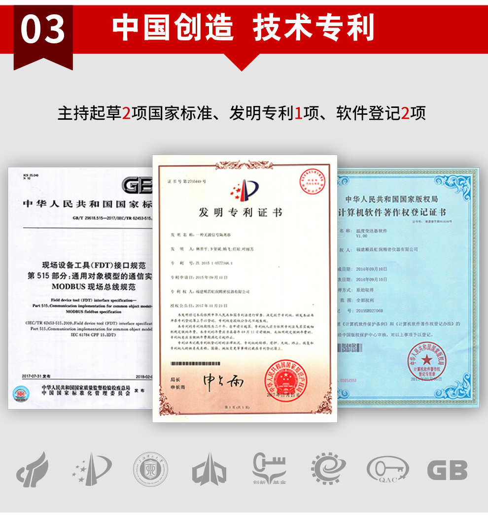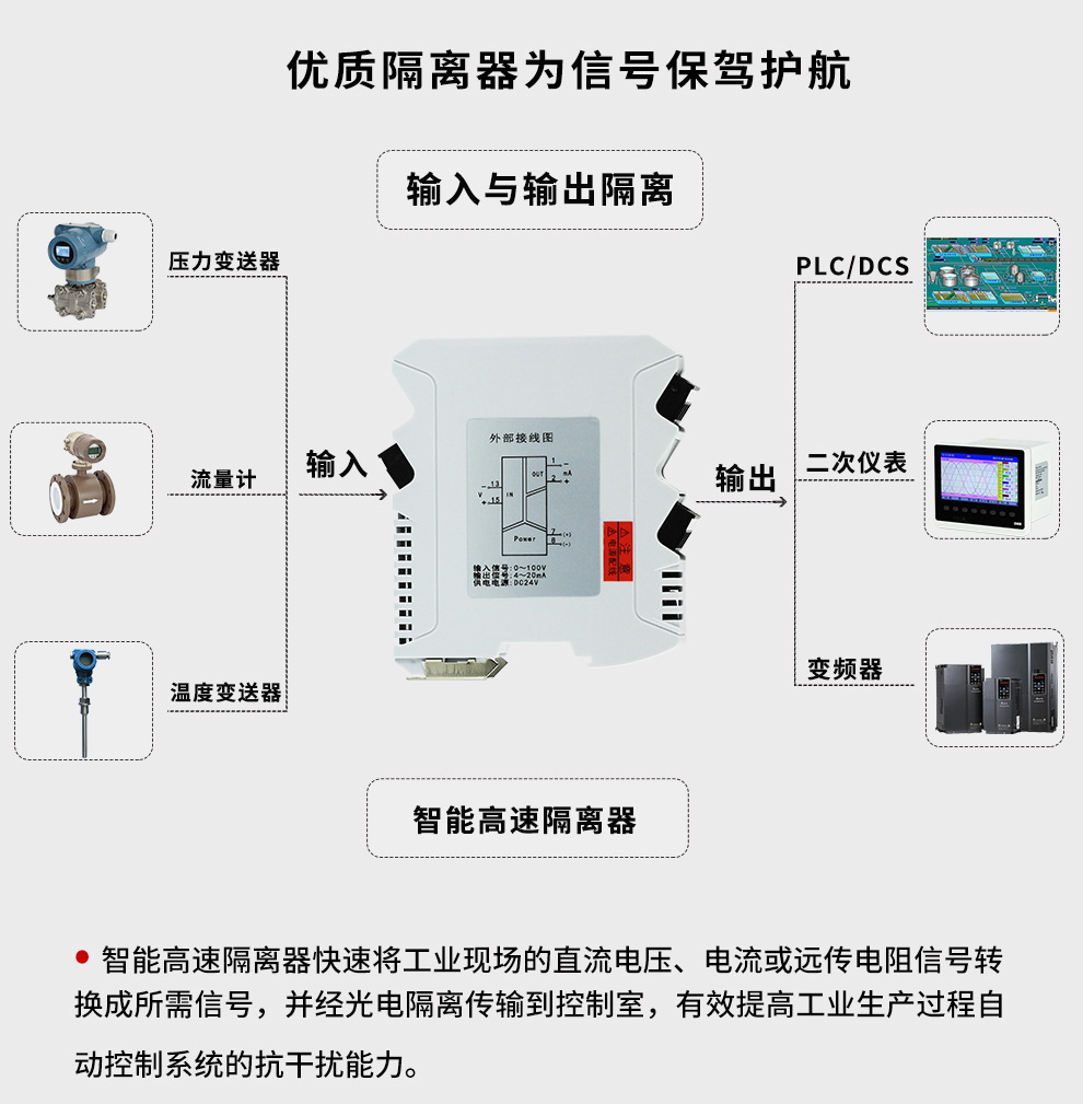 虹潤公司是專業(yè)生產(chǎn)隔離器的國家專精特新“小巨人”企業(yè)。生產(chǎn)的智能高速隔離器 ,具有電壓電流遠(yuǎn)傳電阻輸入,10ms快速響應(yīng),輸入輸出電源三隔離,高抗干擾,低功耗發(fā)熱低等特點。產(chǎn)品獲得信號隔離器、一種二端子模塊、無源信號隔離器等3項國家發(fā)明專利,主持起草現(xiàn)場設(shè)備工具(FDT)接口規(guī)范、工業(yè)過程測量和控制系統(tǒng)用隔離式安全柵、工業(yè)過程測量和控制系統(tǒng)用配電器等3項國家標(biāo)準(zhǔn),以及通信系統(tǒng)多通道數(shù)據(jù)采集控制終端規(guī)范軍用標(biāo)準(zhǔn)。取得智能高速隔離器等3項相關(guān)軟件著作權(quán)。參與國際5G標(biāo)準(zhǔn)制定。產(chǎn)品廣泛應(yīng)用于電力、石化,冶金、制藥、水處理、機(jī)械配套等各種工業(yè)現(xiàn)場。