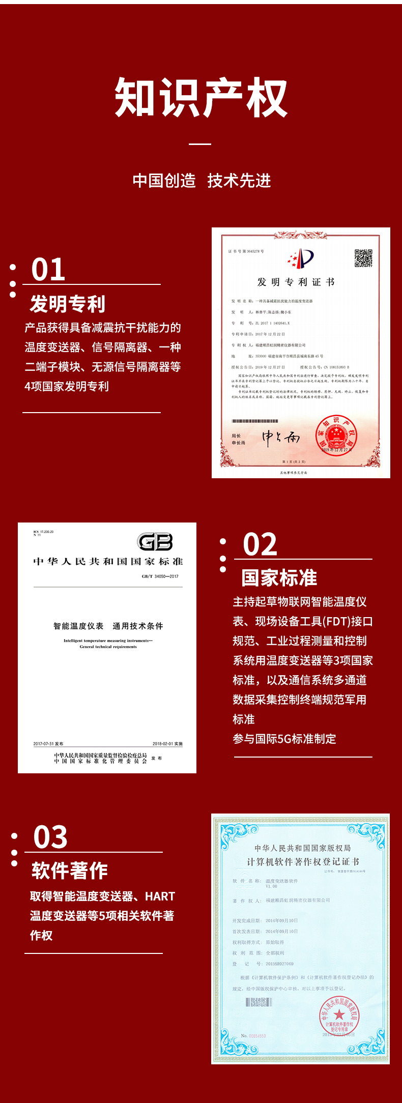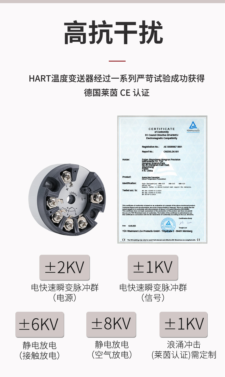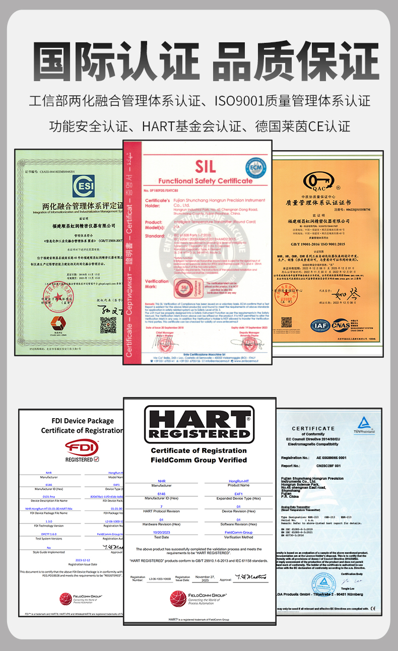 虹潤公司是專業(yè)生產溫度變送器的國家專精特新“小巨人”企業(yè)。生產的智能溫度變送器,具有適配各類溫度傳感器,精度高,穩(wěn)定性好,通過編程線修改輸入信號類型及量程,高抗干擾等特點。該產品不僅通過HART基金會認證、德國萊茵 CE 認證與 SIL 功能安全認證,還獲得具備減震抗干擾能力的溫度變送器、信號隔離器、一種二端子模塊、無源信號隔離器等4項國家發(fā)明專利,主持起草物聯網智能溫度儀表、現場設備工具(FDT)接口規(guī)范、工業(yè)過程測量和控制系統(tǒng)用溫度變送器等3項國家標準,以及通信系統(tǒng)多通道數據采集控制終端規(guī)范軍用標準,參與國際5G標準制定,取得智能溫度變送器、HART溫度變送器等3項相關軟件著作權。產品廣泛應用于石油、化工、電力、冶金、制藥、食品、水處理等各種工業(yè)領域。