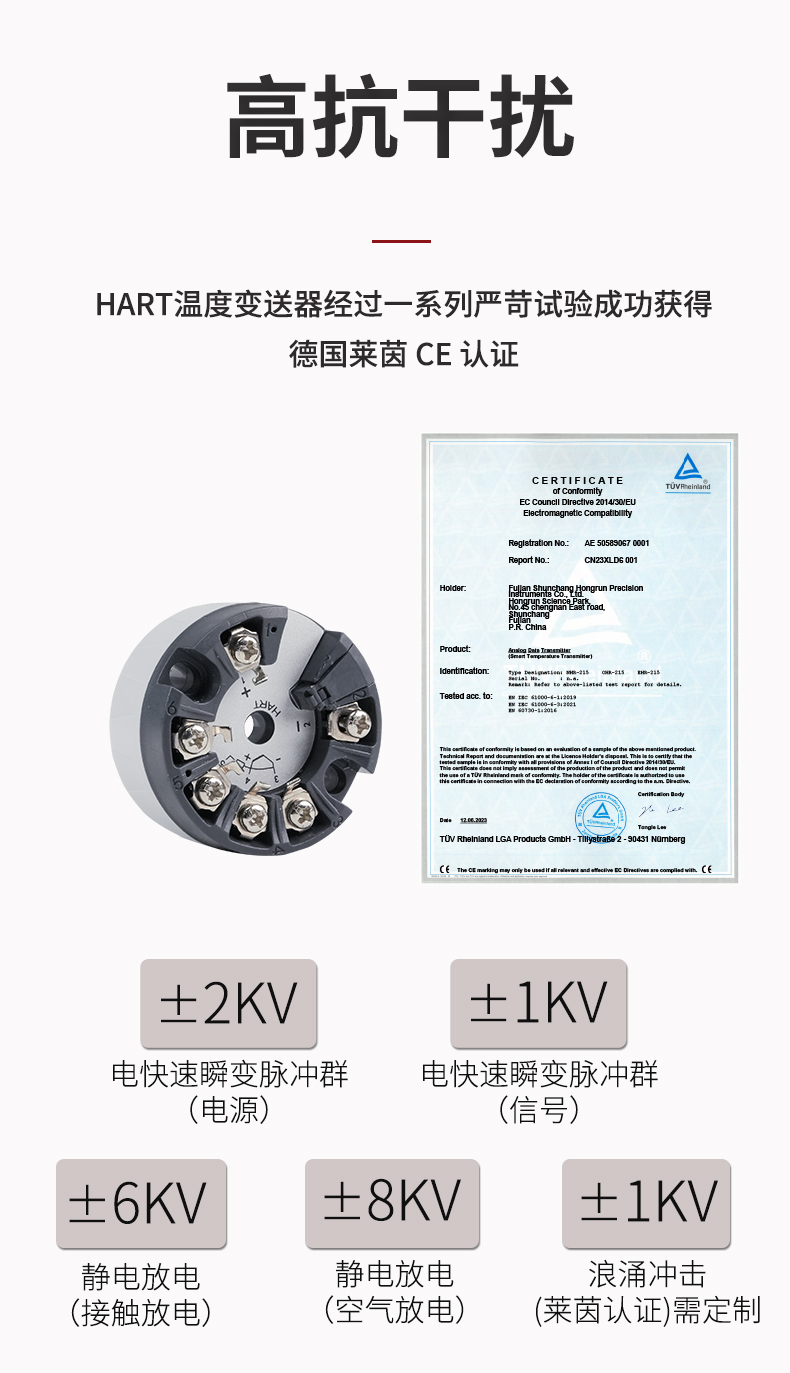 虹潤公司是專業(yè)生產(chǎn)溫度變送器的國家專精特新“小巨人”企業(yè)。生產(chǎn)的智能溫度變送器,具有適配各類溫度傳感器,精度高,通過編程線修改輸入信號類型及量程,高抗干擾,HART或485通訊等特點(diǎn)。該產(chǎn)品不僅通過HART基金會認(rèn)證、德國萊茵 CE 認(rèn)證與 SIL 功能安全認(rèn)證,還獲得具備減震抗干擾能力的溫度變送器、信號隔離器、一種二端子模塊、無源信號隔離器等4項(xiàng)國家發(fā)明專利,主持起草物聯(lián)網(wǎng)智能溫度儀表、現(xiàn)場設(shè)備工具(FDT)接口規(guī)范、工業(yè)過程測量和控制系統(tǒng)用溫度變送器等3項(xiàng)國家標(biāo)準(zhǔn),以及通信系統(tǒng)多通道數(shù)據(jù)采集控制終端規(guī)范軍用標(biāo)準(zhǔn),參與國際5G標(biāo)準(zhǔn)制定,取得HART溫度變送器、智能溫度變送器等3項(xiàng)相關(guān)軟件著作權(quán)。產(chǎn)品廣泛應(yīng)用于石油、化工、電力、冶金、制藥、食品、水處理等各種工業(yè)領(lǐng)域。
