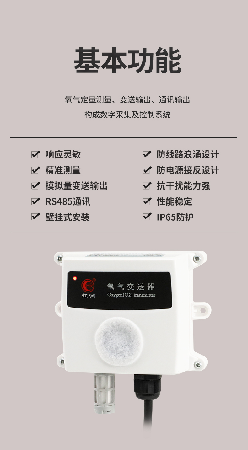 虹潤公司是專業(yè)生產(chǎn)環(huán)境監(jiān)測儀表的國家專精特新“小巨人”企業(yè)。生產(chǎn)的氧氣變送器,具有采用電化學(xué)原理,響應(yīng)靈敏,準確度高,低功耗,模擬量變送輸出或RS485通訊等特點。產(chǎn)品獲得一種農(nóng)業(yè)監(jiān)控變送器、一種儀表電源等2項實用新型專利,主持起草現(xiàn)場設(shè)備集成等5項智能制造國家標準,以及現(xiàn)場設(shè)備工具(FDT)接口規(guī)范、物聯(lián)網(wǎng)總體技術(shù)智能傳感器特性與分類等2項國家標準,參與國際5G標準制定,取得農(nóng)業(yè)監(jiān)控變送器等3項相關(guān)軟件著作權(quán)。產(chǎn)品廣泛應(yīng)用于機房、配電站、地下車庫、工廠倉庫、食品儲存、養(yǎng)殖場、果蔬林園等環(huán)境場合對氧氣濃度的檢測。