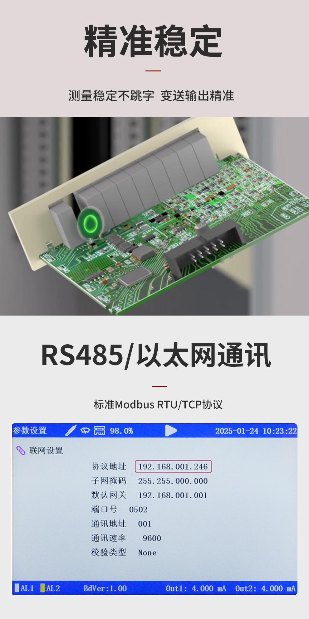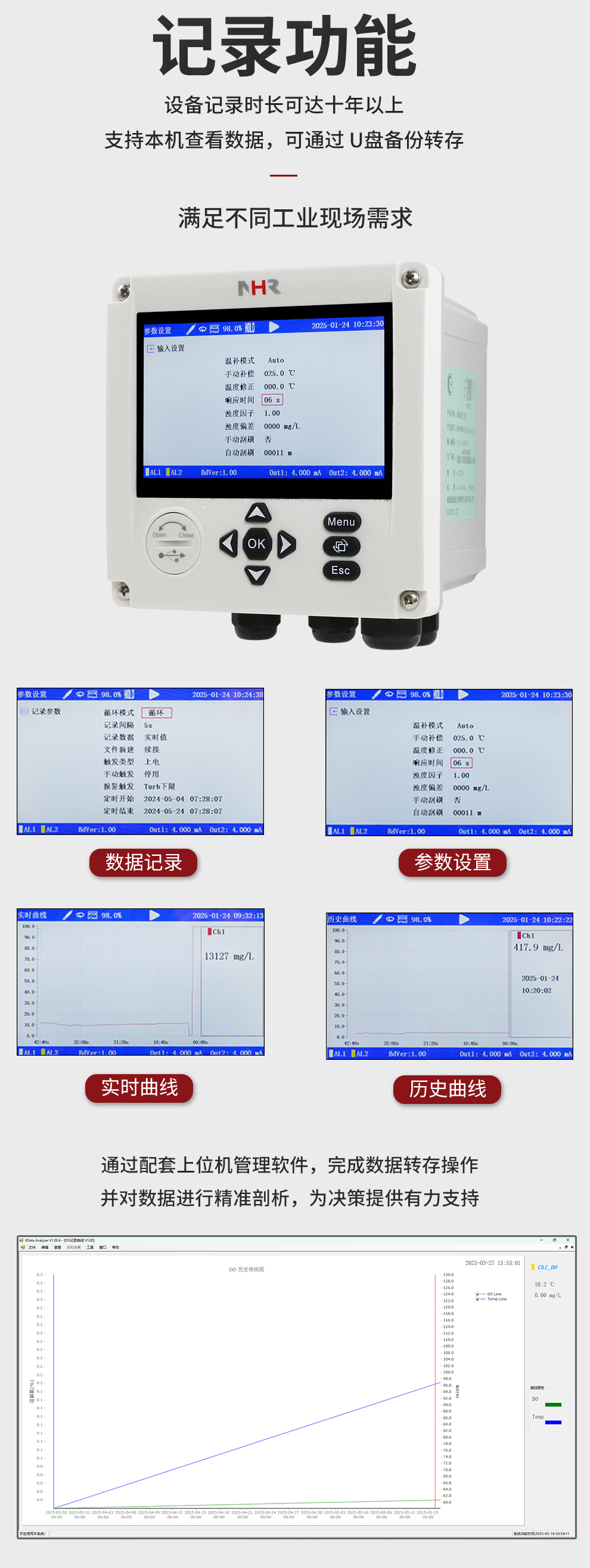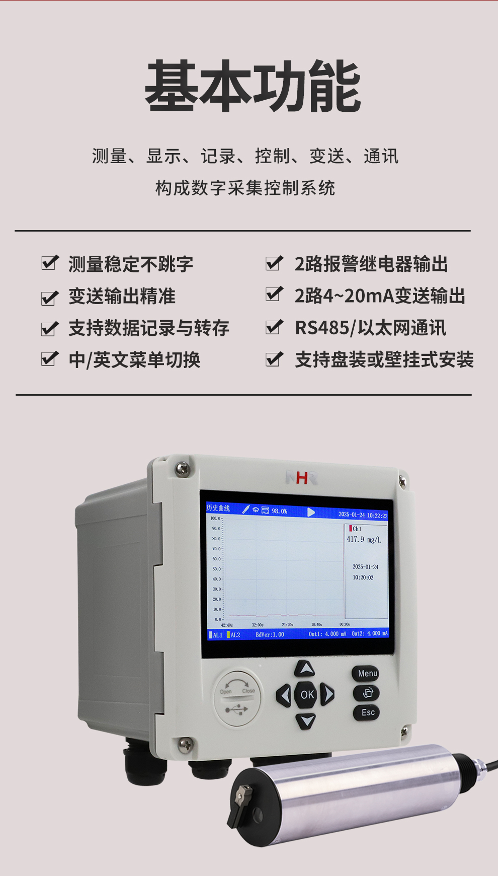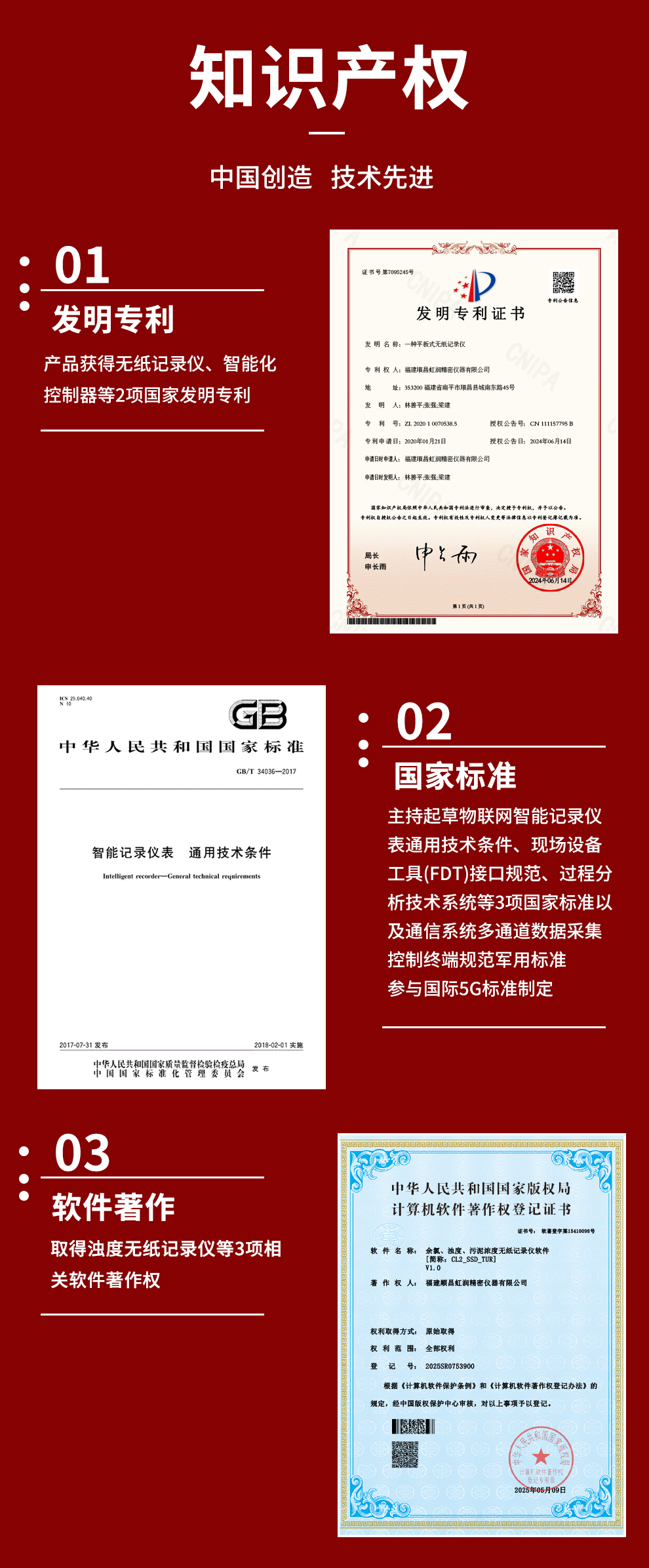 虹潤(rùn)公司是專(zhuān)業(yè)生產(chǎn)水質(zhì)分析儀的國(guó)家專(zhuān)精特新“小巨人”企業(yè)。生產(chǎn)的濁度/污泥記錄儀,具有彩色大屏顯示,測(cè)量精準(zhǔn)穩(wěn)定不跳字,數(shù)據(jù)記錄與轉(zhuǎn)存,RS485/以太網(wǎng)通訊,配套上位機(jī)管理軟件等特點(diǎn)。產(chǎn)品獲得一種平板無(wú)紙記錄儀、智能化控制器等2項(xiàng)國(guó)家發(fā)明專(zhuān)利;主持起草物聯(lián)網(wǎng)智能記錄儀表通用技術(shù)條件、現(xiàn)場(chǎng)設(shè)備工具(FDT)接口規(guī)范.、過(guò)程分析技術(shù)系統(tǒng)等3項(xiàng)國(guó)家標(biāo)準(zhǔn),以及通信系統(tǒng)多通道數(shù)據(jù)采集控制終端規(guī)范軍用標(biāo)準(zhǔn),參與國(guó)際5G標(biāo)準(zhǔn)制定;取得濁度、污泥濃度無(wú)紙記錄儀等3項(xiàng)相關(guān)軟件著作權(quán)。產(chǎn)品廣泛應(yīng)用于市政供水、污水處理、食品、制藥、造紙、石化、冶金、水處養(yǎng)殖等諸多領(lǐng)域。