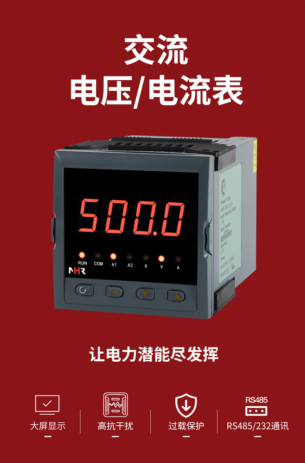 虹潤公司是專業(yè)生產(chǎn)數(shù)字電壓表的國家專精特新“小巨人”企業(yè),生產(chǎn)的交流電壓/電流表,具有大屏LED顯示,電流電壓倍率設(shè)置,高抗干擾,輸出過載保護(hù),RS485/RS232通訊等特點(diǎn)。產(chǎn)品獲得一種交流信號變送器、交直流信號轉(zhuǎn)換電路、基于DCS技術(shù)的盤裝式三相電量表等3項國家發(fā)明專利,主持起草工業(yè)過程控制系統(tǒng)用模擬輸入兩位或多位輸出儀表國家標(biāo)準(zhǔn),直流漏電流傳感器規(guī)范、通信系統(tǒng)多通道數(shù)據(jù)采集控制終端規(guī)范等2項軍用標(biāo)準(zhǔn),以及現(xiàn)場設(shè)備集成等5項智能制造國家標(biāo)準(zhǔn),參與國際5G標(biāo)準(zhǔn)制定。取得單相電量儀表等2項相關(guān)軟件著作權(quán)。產(chǎn)品廣泛應(yīng)用于工業(yè)制造、建筑地產(chǎn)、機(jī)電設(shè)備、能源電力、市政設(shè)施 、數(shù)據(jù)中心與通信等諸多領(lǐng)域。
